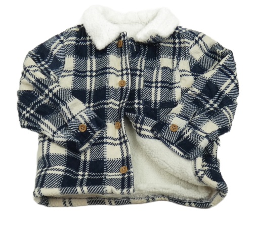 Tmavomodro-biela kockovaná menšestrová zateplená košeľová bunda Tu