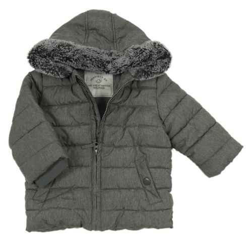Sivá šušťáková prešívaná zimná bunda s kapucňou s kožešinou George
