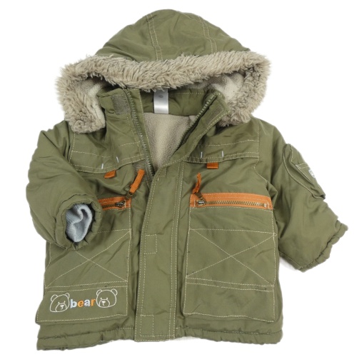 Khaki šušťáková zimná bunda s medvedíkmi a odopínacíá kapucňou s kožešinou C&A