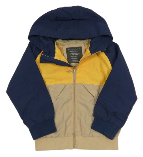 Tmavomodro-žlto-béžová šušťáková jesenná bunda s kapucňou Primark