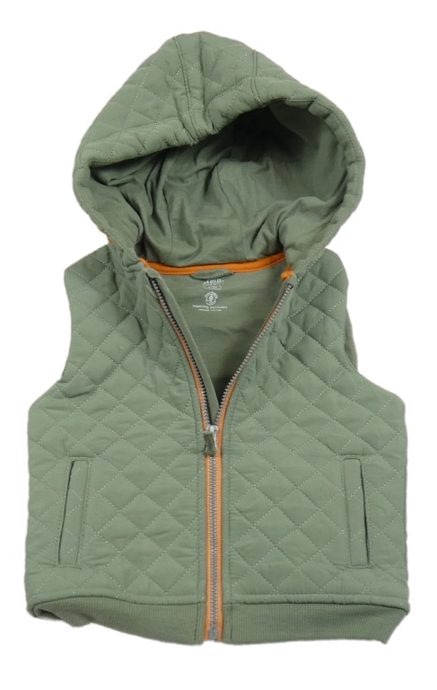 Khaki šušťáková prešívaná zateplená vesta s teplákovou kapucňou F&F