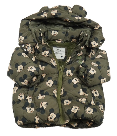 Khaki šušťáková zimná bunda s Mickeym a kapucňou Primark
