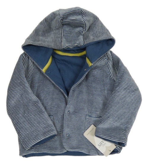 • Nové - tmavomodro-světlešedý pruhovaný sametový zateplený kabátek s kapucňou M&S