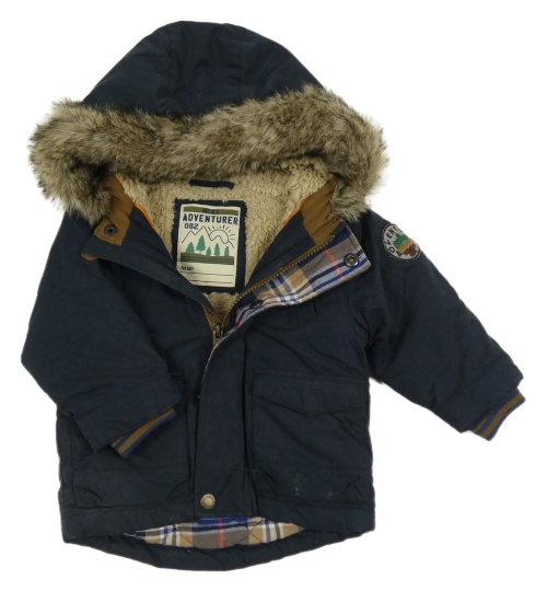 Tmavomodrá šušťáková zateplená bunda s kapucňou s kožešinou Next