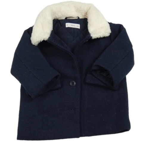 Tmavomodrý vlnený zateplený kabát s golierikom Mango