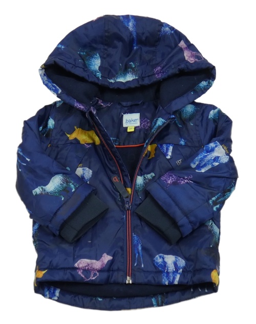 Tmavomodrá šušťáková zateplená bunda so zvířaty a kapucňou Baker