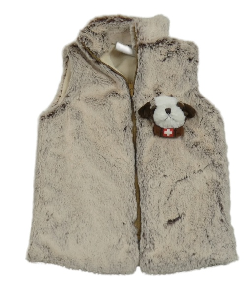 Hnedo-béžová kožušinová zateplená vesta s bernardýnem