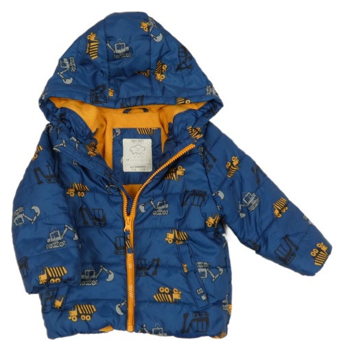 Petrolejová šušťáková zimná bunda so stavebními stroji a kapucňou LC Waikiki