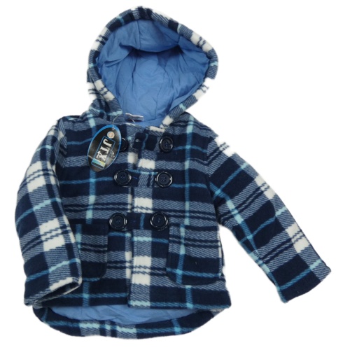 Nové - tmavomodro-modro-bílý kostkovaný fleecový zateplený kabátek s kapucňou