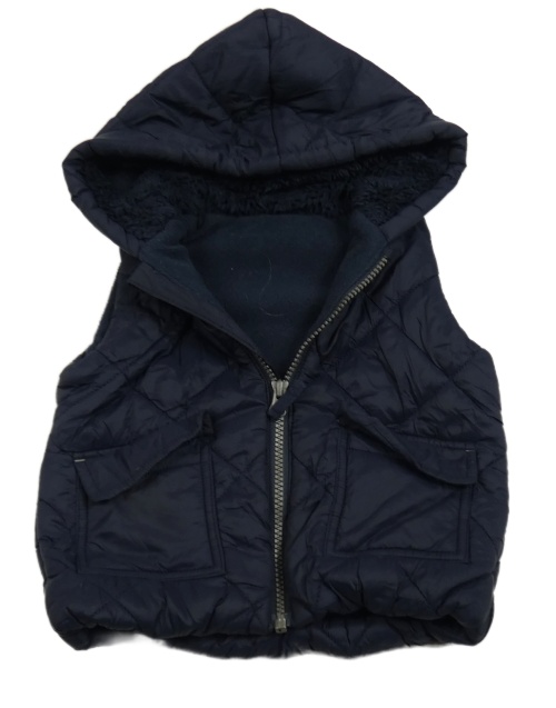 Tmavomodrá šušťáková prešívaná zateplená vesta s kapucňou George
