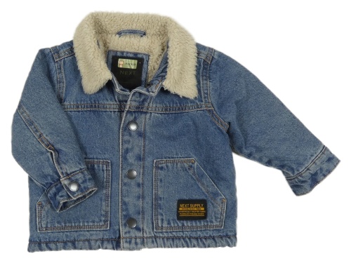 Modrá rifľová zateplená bunda s kožúškom Next
