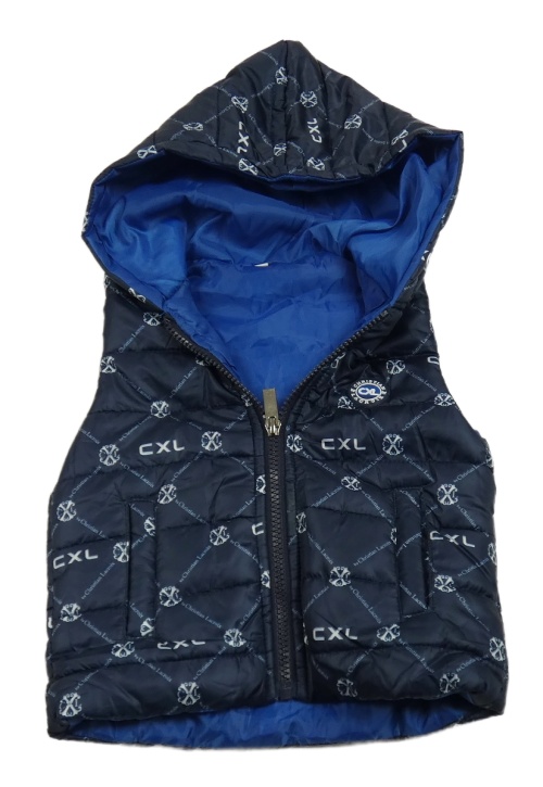 Tmavomodrá vzorovaná šušťáková prešívaná vesta s kapucňou