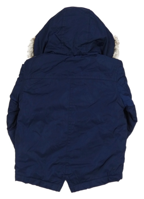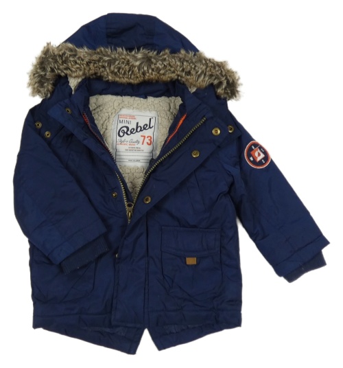 Tmavomodrá šušťáková zimná parka s nášivkou a kapucňou s kožešinou Rebel