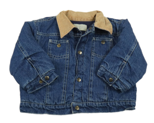 Modrá rifľová zateplená bunda s béžovým golierikom