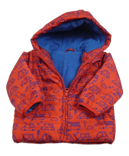 Červená prešívaná šušťáková zimná bunda s autami a kapucňou St. Bernard