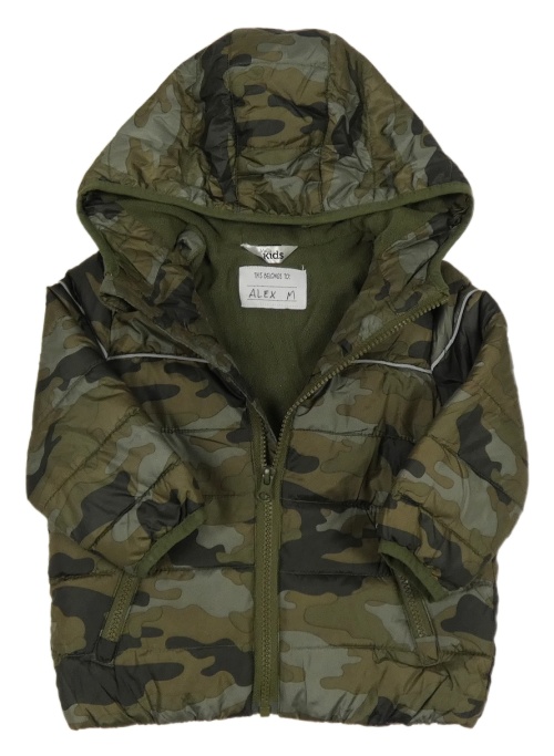 Kaki-hnedá army šušťáková prešívaná zimná bunda s kapucňou M&Co.