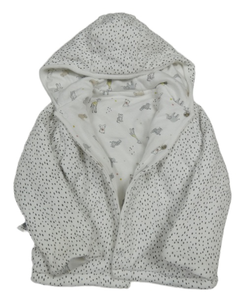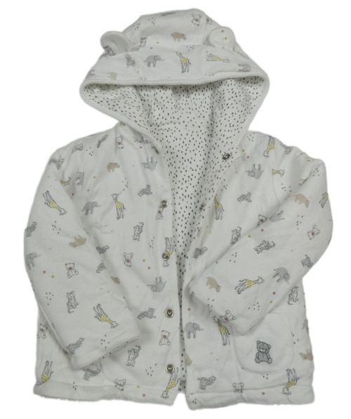 Bílý oboustranný zateplený kabátek so zvieratkami a kapucňou Little Nutmeg