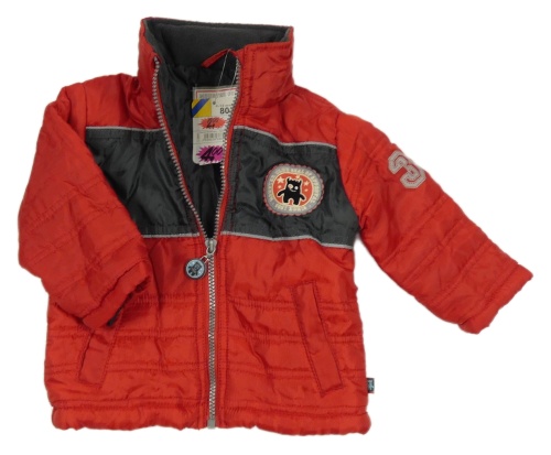 Nové - Červeno-sivá šušťáková zimná bunda s príšerkou a kapucňou