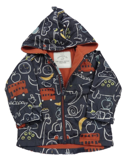 Tmavomodrá šušťáková jarná bunda s obrázkami a kapucňou George