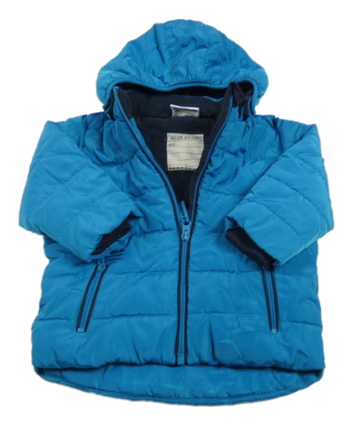 Modrá prešívaná šušťáková zimná bunda s odopínacíá kapucňou Topomini
