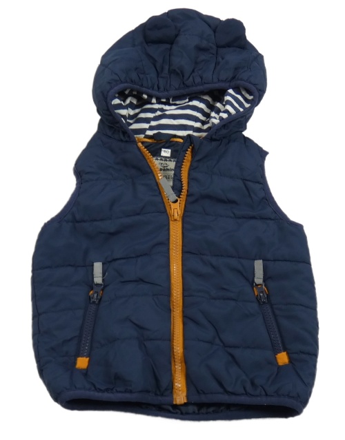 Tmavomodrá prešívaná šušťáková zateplen vesta s kapucňou s uškami Topomini