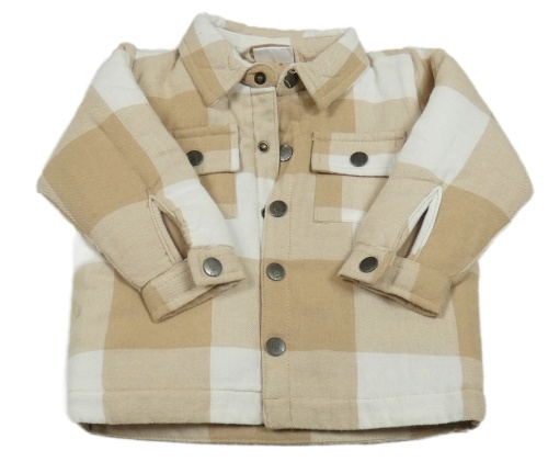 Béžovo-biela kockovaná plátenná košeľová zateplená bunda So Cute