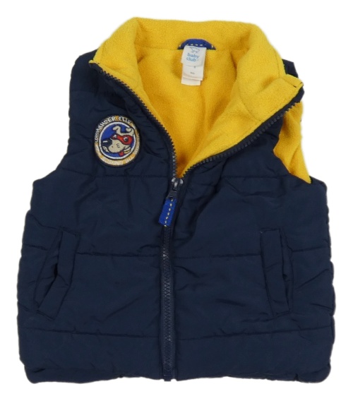 Tmavomodrá šušťáková zateplená vesta s nášivkou C&A