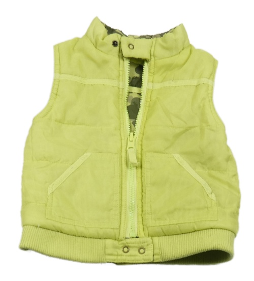 Neónově žluto-khaki army šušťáková zateplená obojstranná vesta