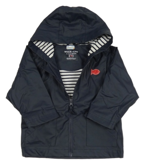Tmavomodrá nepromokavá jarná bunda s rybou a kapucňou
