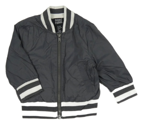 Tmavosivá šušťáková jarná bunda s bílým lemem