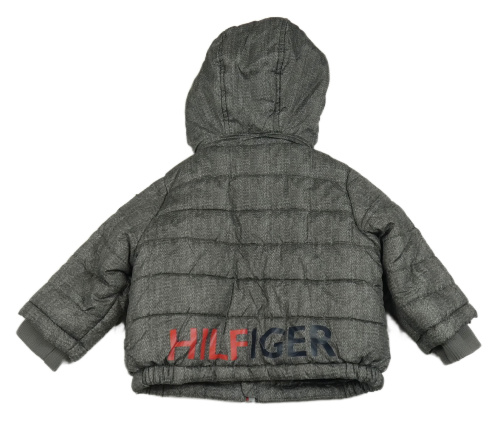 • Sivá melírovaná šušťáková zimná bunda s prúžkami a kapucňou Tommy Hilfiger