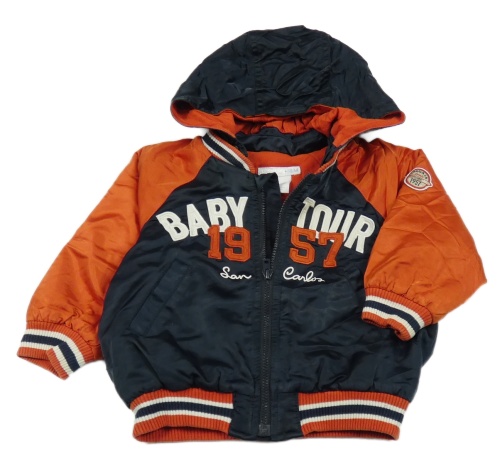 Tmavomodro-červený šusťákový podšitý bomber s nápisom a kapucňou H&M