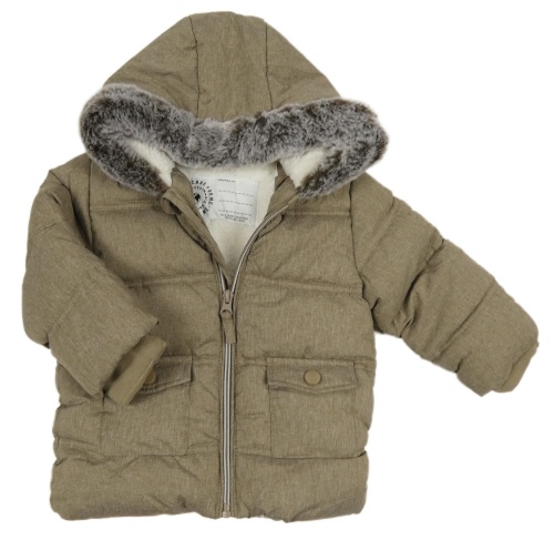 • Kávová melírovaná prešívaná šušťáková zimná bunda s kapucňou s kožešinou George