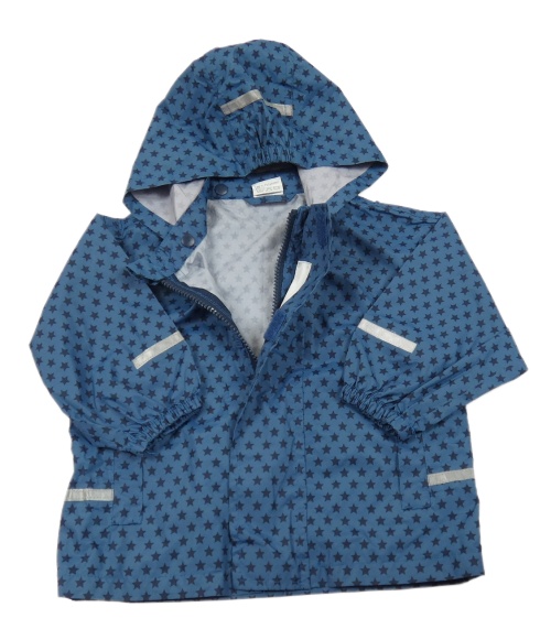 Tmavomdorá šušťáková jarná bunda s hviezdami a kapucňou Papagino