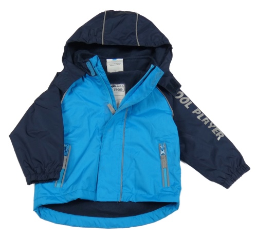 Modro-tmavomodrá šušťáková jarná bunda s nápisom a kapucňou Topomini