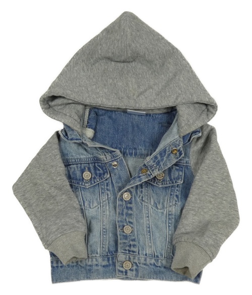 Modro-sivá riflovo/tepláková bunda s kapucňou