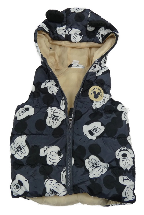 Tmavosivá šušťáková prešívaná zateplená vesta s Mickeym a kapucňou Disney