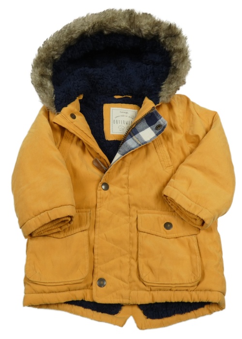 Horčicová šušťáková zateplená bunda s kapucňou s kožešinou George