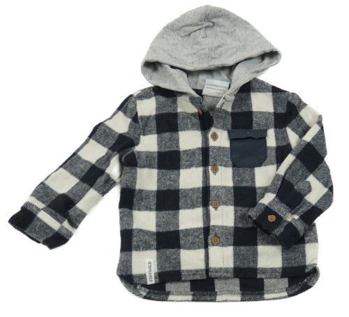 Tmavomodro-biela kockovaná flaušová košeľová bunda s kapucňou Topomini