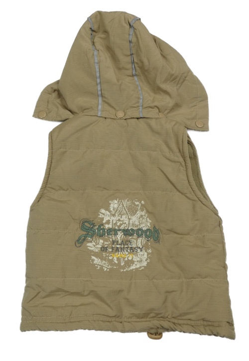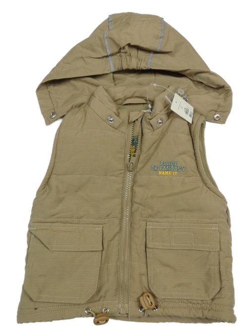 Nové - Béžová šušťáková zateplená vesta s odopínacíá kapucňou