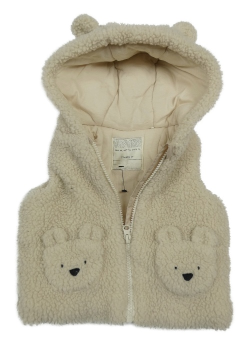 Béžová huňatá zateplená vesta s kapucňou Tu