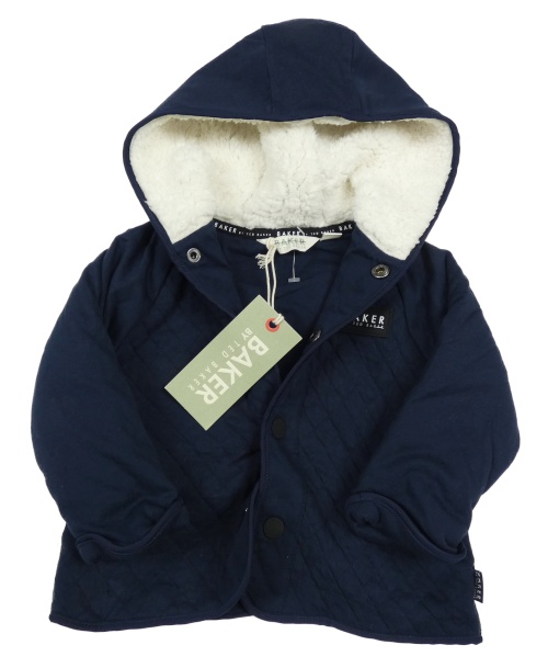 • Nové - tmavomodrý prošívaný vyteplený podšitý kabátek s nášivkou a kapucňou TED BAKER