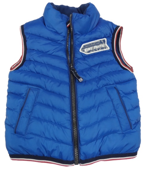 Modrá prešívaná šušťáková zateplená vesta s nášivkou Eat Ants