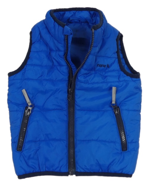 Cobaltovoě modrá prešívaná šušťáková zateplená vesta s logom name it.