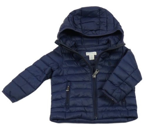 Tmavomodrá šušťáková prešívaná zateplená bunda s kapucňou Ralph Lauren