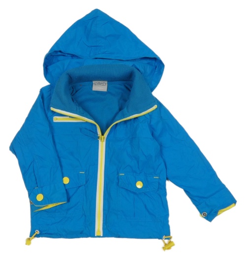 Modrá šušťáková jarná bunda s odopínacíá kapucňou