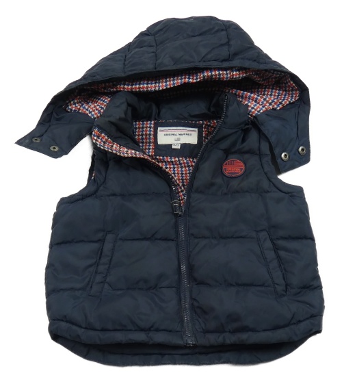 Tmavomodrá šušťáková zateplená vesta s logom a kapucňou Original Marines
