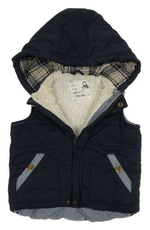 Světle-tmavomodrá šušťáková zateplená vesta s kapucňou Matalan