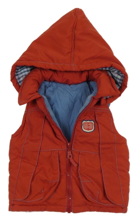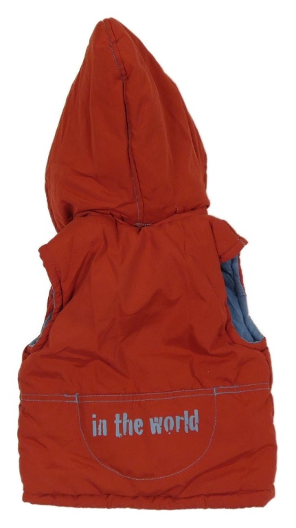 • Tehlová prešívaná šušťáková zateplená vesta s číslom a odopínacíá kapucňou St. Bernard