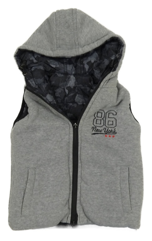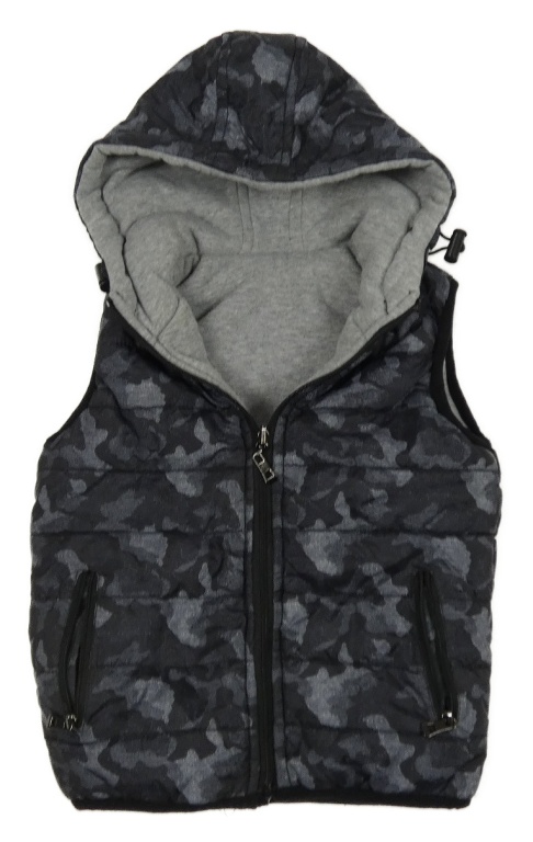 Čierno-sivá army šušťáková zateplená obojstranná vesta s kapucňou